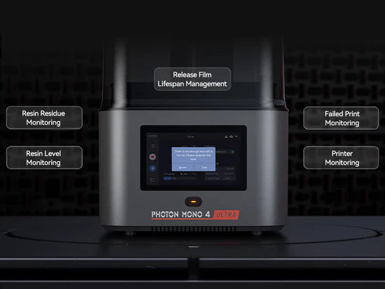 - 🧠 Intelligent Assist Systems: Save material and time with smart features: Failed Print Detection, Resin Residue Detection (protects your screen), Dynamic Release control, and Film Lifespan Management.