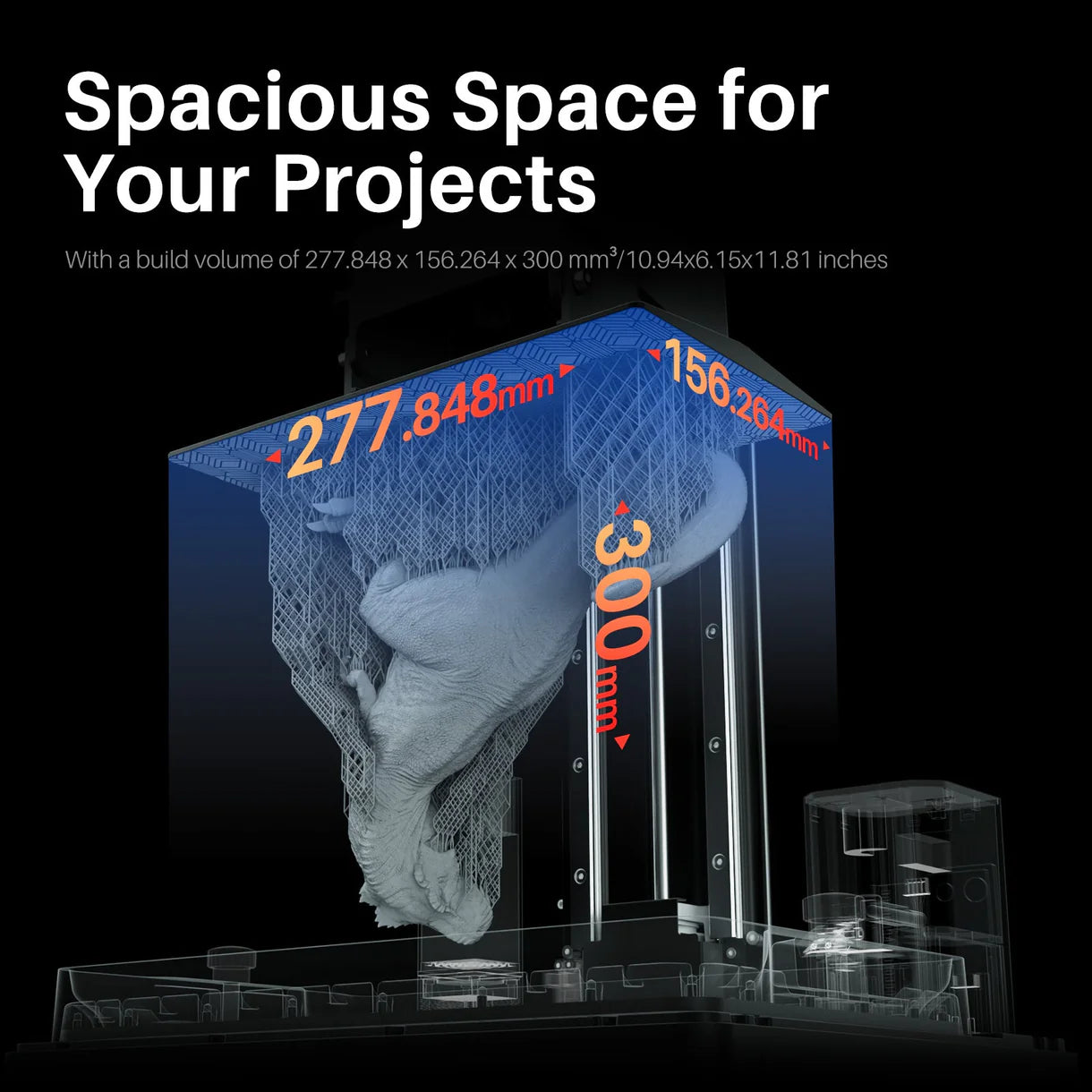 - Spacious Build Volume: 277.85 x 156.26 x 300 mm makes it ideal for large artworks, prototypes, and batch printing multiple components simultaneously.